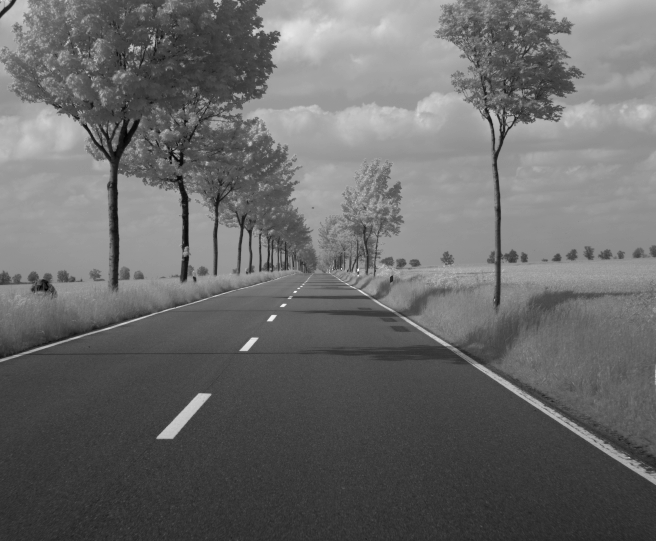 Avenue sequence: This sequence shows a ride with about 95 km/h along a straight avenue lined with trees.